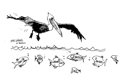 Now the name is not only applied to a big league basketball team but also it has taken on extra significance. More than the state bird, the pelican has become a symbol of wetland conservation and survival. When pelicans glide over waterways, it’s a good sign because that means there are plenty fish. We are blessed with the spectacle of Pelicans eyeing not only lakes, but Lakers as well.