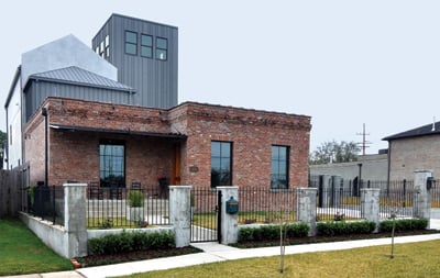 Drive up to the home of Gwen and Paul Loria in New Orleans’ Lakeview neighborhood, and marvel at the unique structure that includes a three-story tower and multiple buildings joined together to create a somewhat mysterious streetscape. One thing is immediately evident: This isn’t your usual cookie-cutter architecture. Gwen, a young architectural designer who attended Tulane University School of Architecture, is quick to explain in her professional vocabulary what is going on with the house she designed for her young family, which includes four children under the age of 7: “Growing up in the New Orleans area, I have a love and appreciation for local architecture. I love the ad hoc assembly of the local vernacular. I wanted to design a house with an ad hoc feel with the cityscape in a single residence. It resulted in programmatic puzzles but allowed rich interactive spaces to be manifested.”