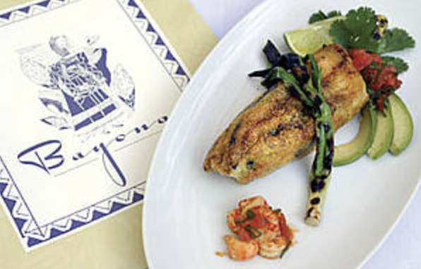 Chilled avocado soup with charred scallions (cebollitos) and crispy tortillas