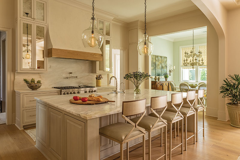 The couple’s builder, Gulf States Construction, recommended adding Chad Graci of Graci Interiors to the team. The homeowner says Graci was part of the decision-making process at the outset. The plans needed considerable revision, having been created for a family with small children. From interior elevations and modifying the floorplan to adding rooms and redesigning cabinetry, Graci’s vision permeates every corner of the 5,000-square-foot home.