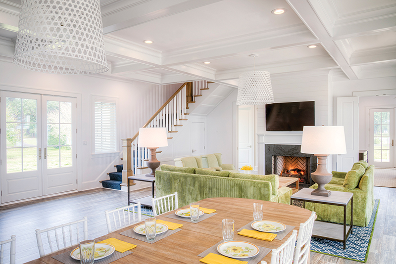 Hopkins incorporated the Borieses’ ideas into a coastal vacation house comprised of a central 1 ½-story volume with symmetrical two-story wings on either end. Because the land is located on a bluff, it already met the elevation requirements, so the plans raised the house only a few steps, allowing it to look like the area’s traditional forbears. Hopkins placed the bedrooms (two masters and two guests) upstairs with doors that open onto balconies overlooking the water to take advantage of the views and provide a separation between the downstairs living and upstairs sleeping areas. Twin staircases in the great room lead to the suites with a hallway linking the two and an elevator for convenience. There is plenty of space for family to fan out. In addition to the kitchen, living and dining areas, Hopkins included a keeping room, a downstairs den, an upstairs sitting area, and indoor and outdoor porches.