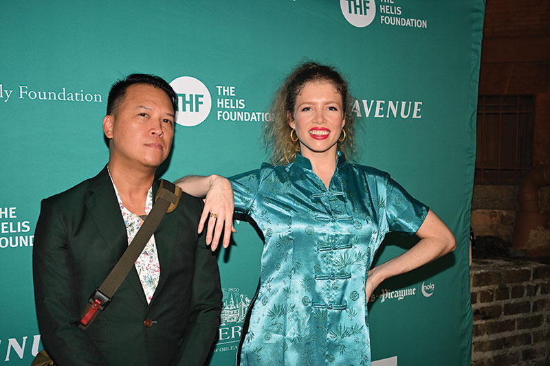 Members of Krewe des Fleurs welcomed guests, while entertainment included DJ Heelturn and DJ Juane Jordan in the atrium, Mia Borders on the rooftop terrace and what proved to be very popular, the karaoke stage in the Patrick F. Taylor Library. A glitter bar and tattoo station (with temporary tattoos inspired by the “Hoa Tay” exhibition) helped adorn guests, who could also make paper flowers and enjoy Bau Cua Cá Cop (Gourd, Crab, Shrimp, Fish), which is a traditional Vietnamese dice game primarily played during Lunar New Year celebrations.