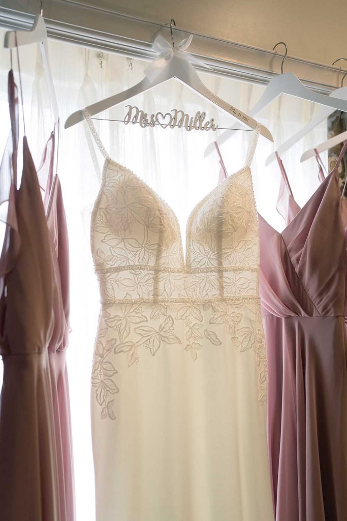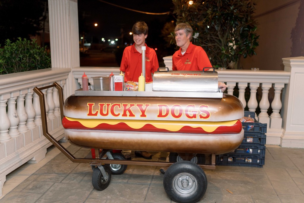 Favors: Wine by Coteau Ridge Winery (groom’s father); pralines by Maurice French Pastries; and hot dogs by Lucky Dogs
