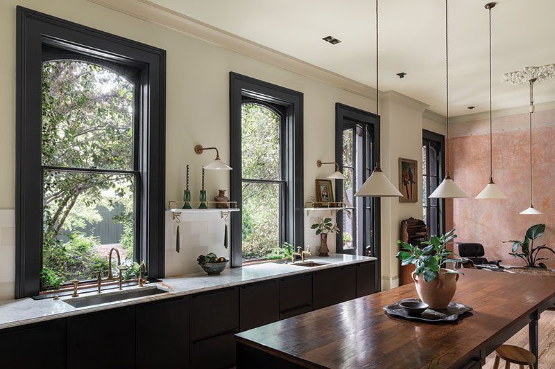 Built in 1894 by Dr. Oscar Czarnowski, a prominent physician, the home had led many lives before the Seidmans purchased it in 2020. “Unlike many homes from that era, the home was framed in masonry instead of wood — a more durable and expensive material that reflected Dr. Czarnowski’s means,” says architect Kim Payne Allen of Studio BKA, who led the restoration. By 1921, the single-family residence had been converted into four luxury apartments, and, when the Seidmans acquired it, the main structure housed two residences alongside two units in the carriage houses.