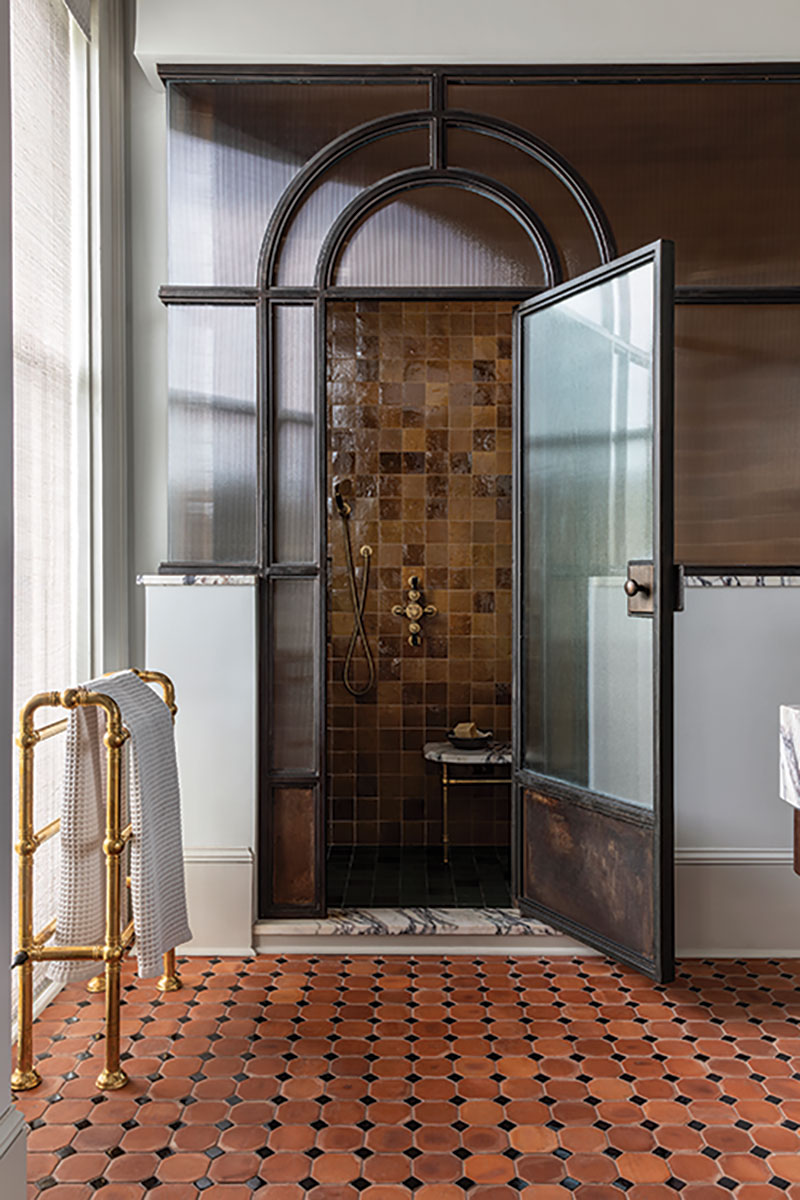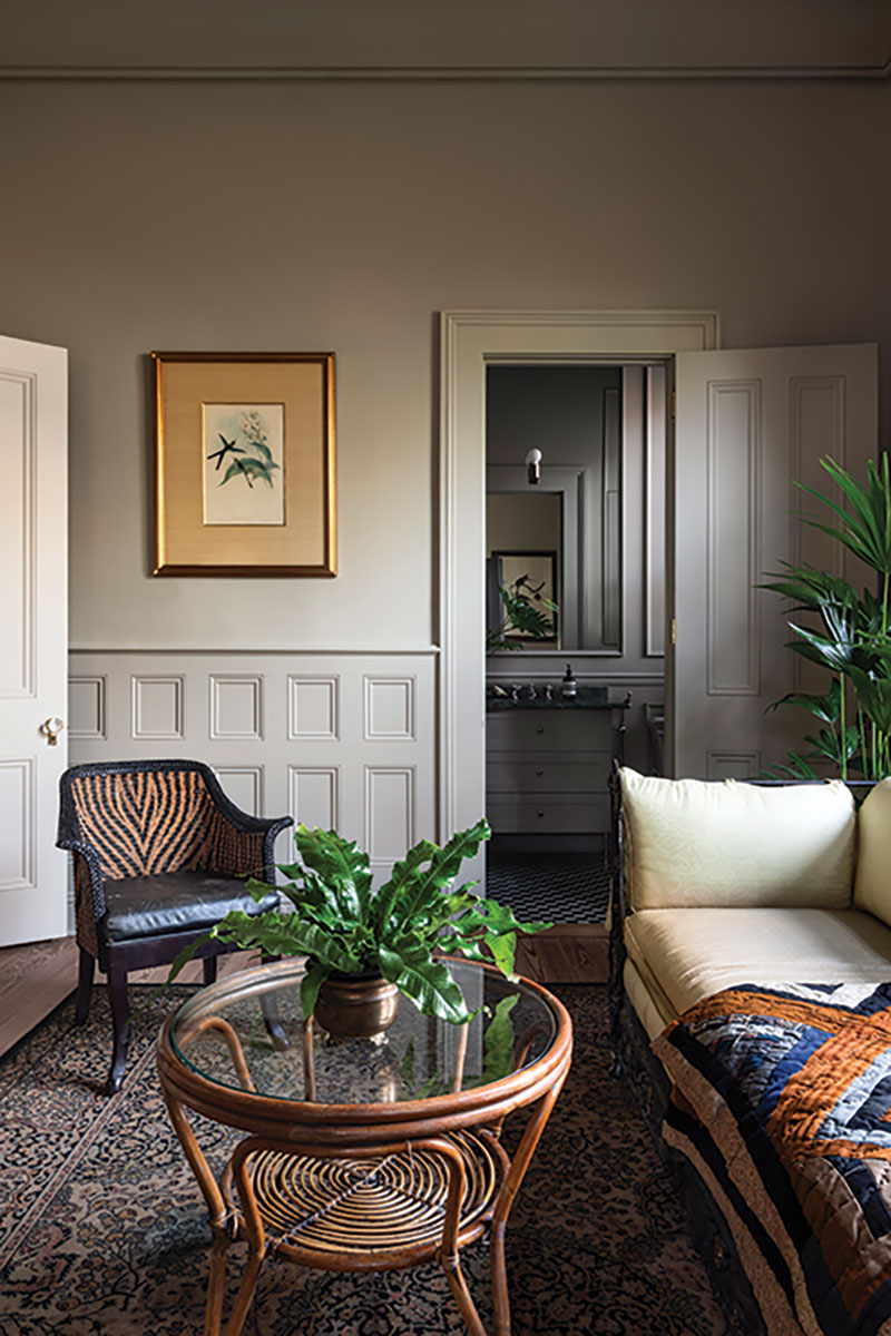 However, the delicate balance between historic preservation and modern functionality required ingenuity. Like most historic homes in New Orleans, storage can be an issue. “I don’t like reducing the proportions of historic rooms, so we had clever ways to tuck storage into integrated design elements,” Allen says. “We created a lot of built-ins that looked like walls. You’ll see this in the nursery, kitchen and the primary bathroom.”