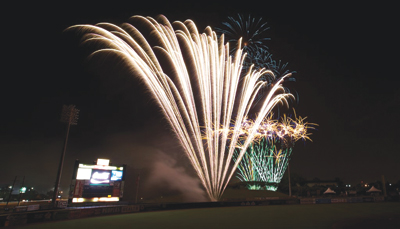 Other times, an after-game concert reinforces the theme. On June 8, the team salutes the Fab Four with Beatles trivia and prizes and a performance by Sgt. Pepper’s Lonely Hearts Tribute Band. Some games combine the music with the sparklers for major effect. The 4th of July game against the RedHawks includes a patriotic fireworks display plus a post-game concert.