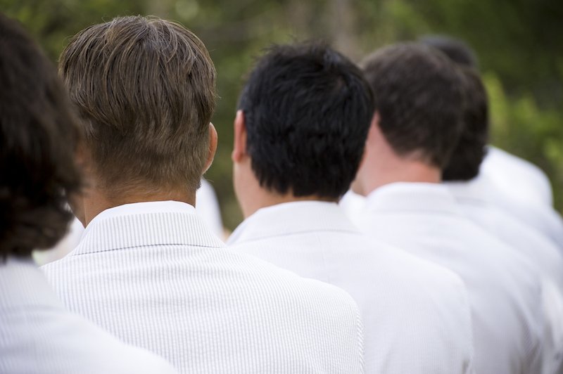 Question: My boyfriend and I are attending a wedding next week and if it’s warm, he says he wants to wear his seersucker suit. It’s a day wedding. I thought you weren’t supposed to wear white, linen or seersucker until after Memorial Day. Can my boyfriend wear seersucker to a wedding before Memorial Day?