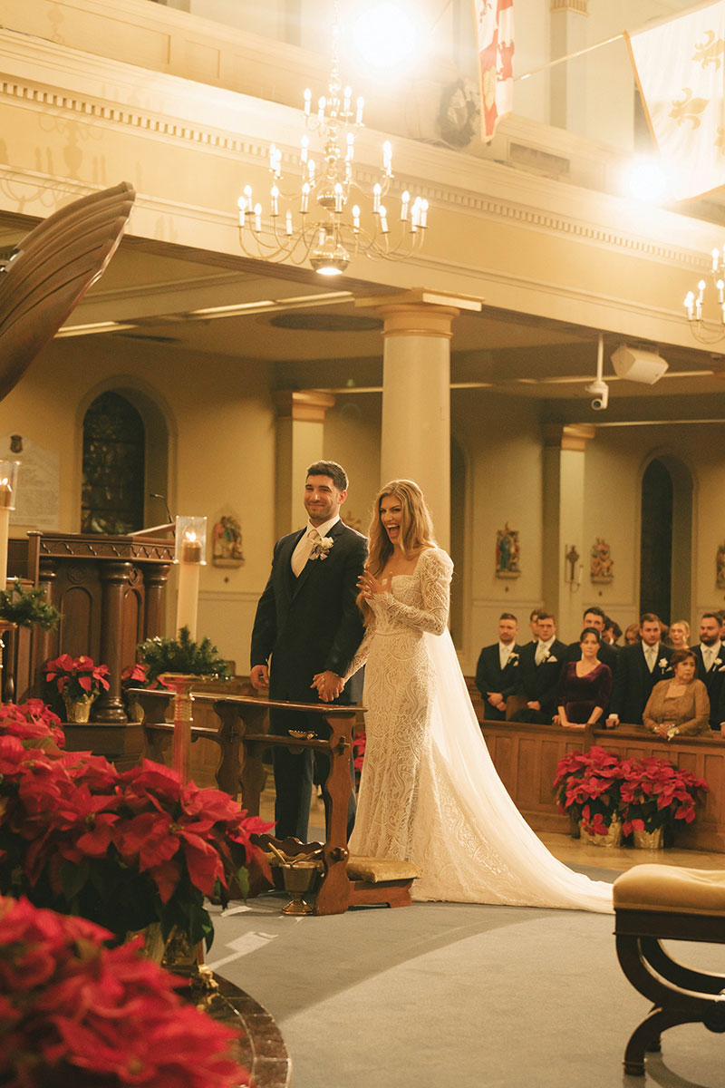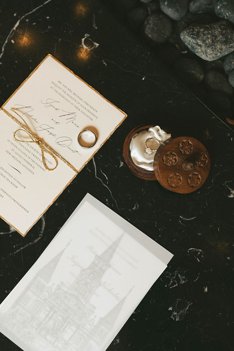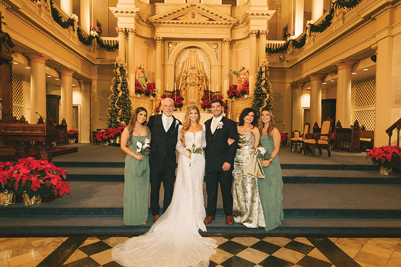 After Ingrid joyfully said yes, they began planning a winter wedding. On January 4, 2025, the two were married at St. Louis Cathedral, where Father Jeff Merritt pronounced them husband and wife. The cathedral was still beautifully decorated for the Christmas season, which beautifully complemented the eucalyptus green and champagne shades in the wedding party’s attire.