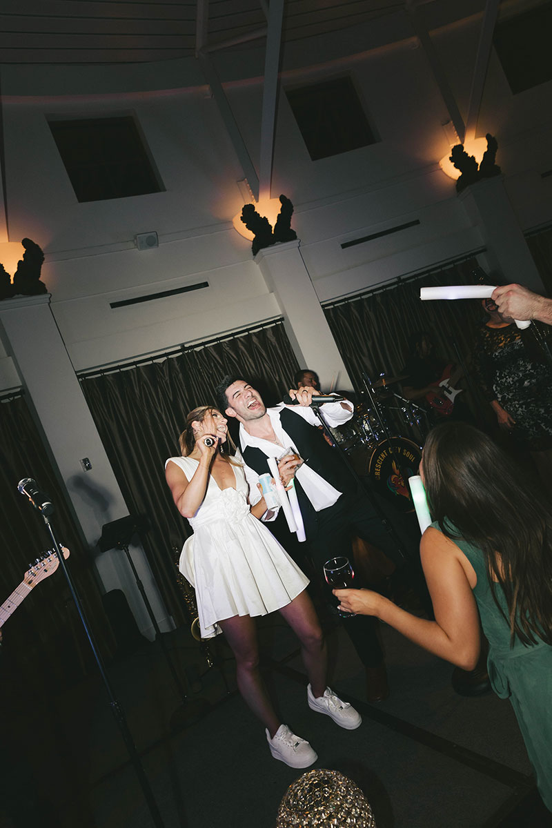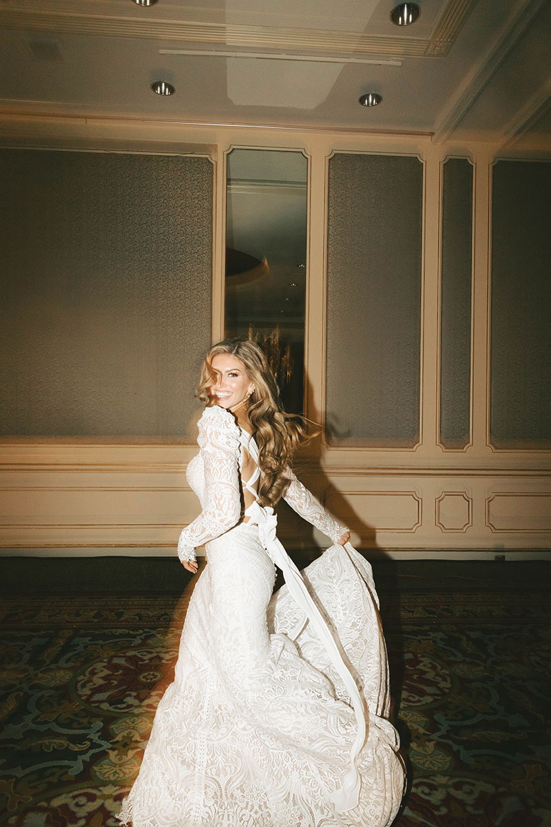The sweetest moment of the evening came when the newlyweds took to the dance floor for their first dance to “Let It Ride” by Brantley Gilbert. The two have always loved the song, and the lyrics resonate poignantly with their relationship. After this dance, the Crescent City Soul Band helped create memorable moments on the dance floor, captured by Brittany Bell Photography. As a memento of the occasion, guests received amber drinking glasses.