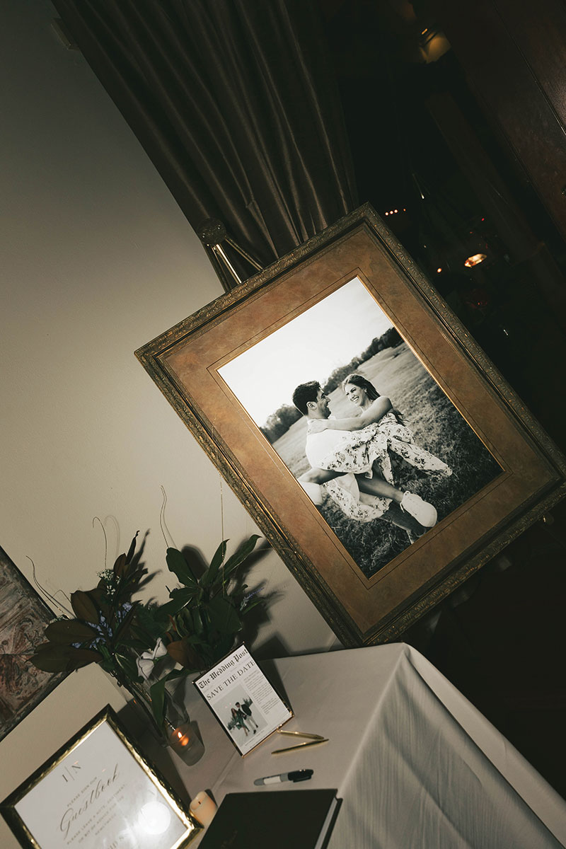 These colors, along with an abundance of flowers, created a warm, inviting feel at the Audubon Tea Room, where the reception took place. Prominently featured at the reception, a memory table displayed photos of Ingrid and Nick’s loved ones who had passed away. The reception also featured an unforgettable menu created by Dickie Brennan’s Catering, and the wedding cake from Gambino’s Bakery was the perfect sweet treat.
